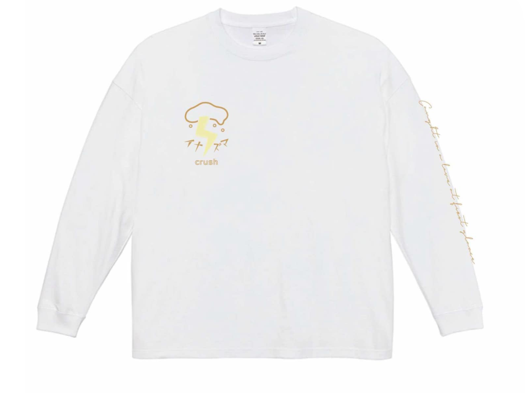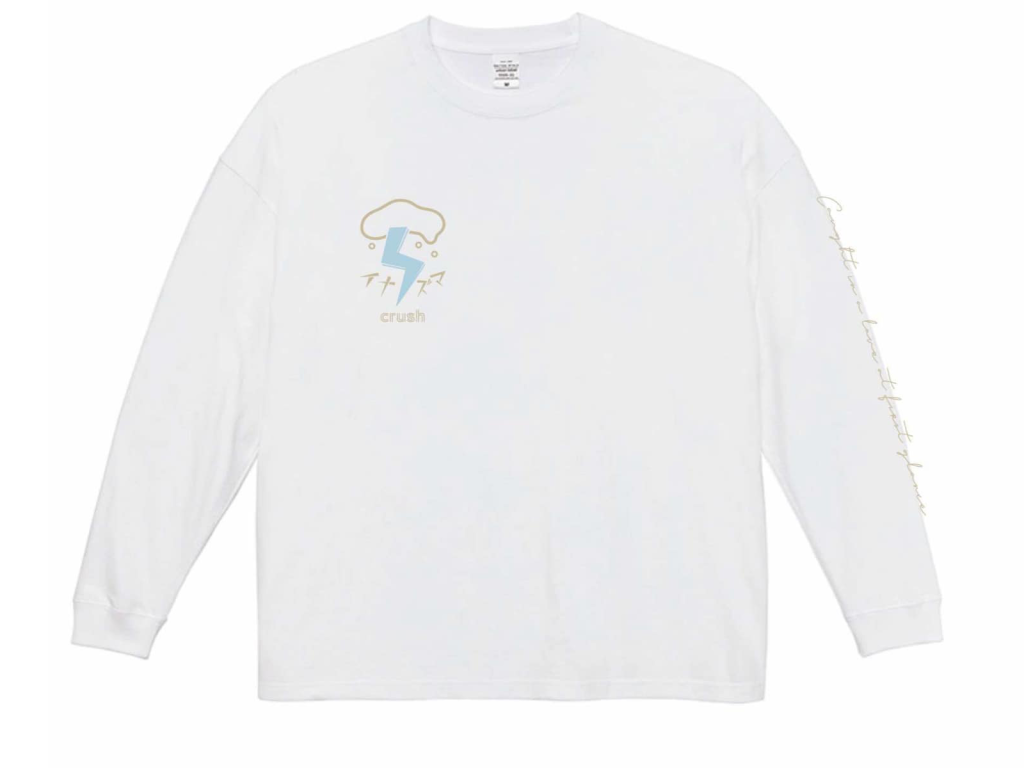 袖には「Caught in a love at first glance.(一目で愛に捕まっちまった)」「crush(片思い)」などのメッセージが。